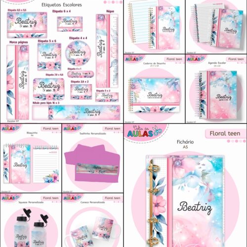 Arquivo 26 Capas Alfabeto A a Z e Miolo Pautado Coleção Rosas do Jardim