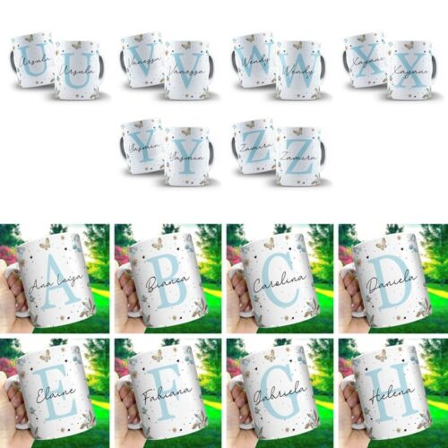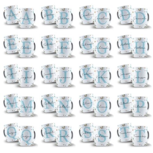 Arte Digital para Caneca Alfabeto Floral Azul