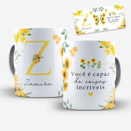 Arte Digital para Caneca Alfabeto Floral Girassol