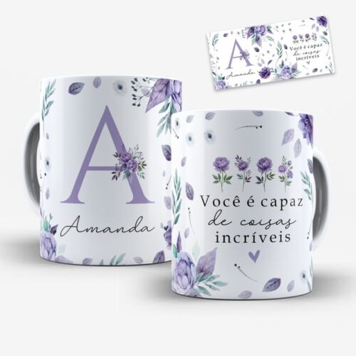 Arte Digital para Caneca Alfabeto Floral Lilás