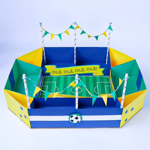 Formada por caixinhas que simulam arquibancadas, a arena é perfeita para servir suas comidinhas favoritas (salgadas ou doces) de uma forma divertida.