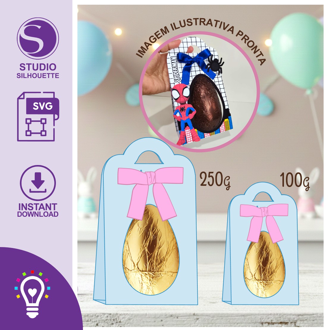 ARQUIVO DE CORTE SUPORTE OVO DE PÁSCOA, MOCKUP + MOLDE