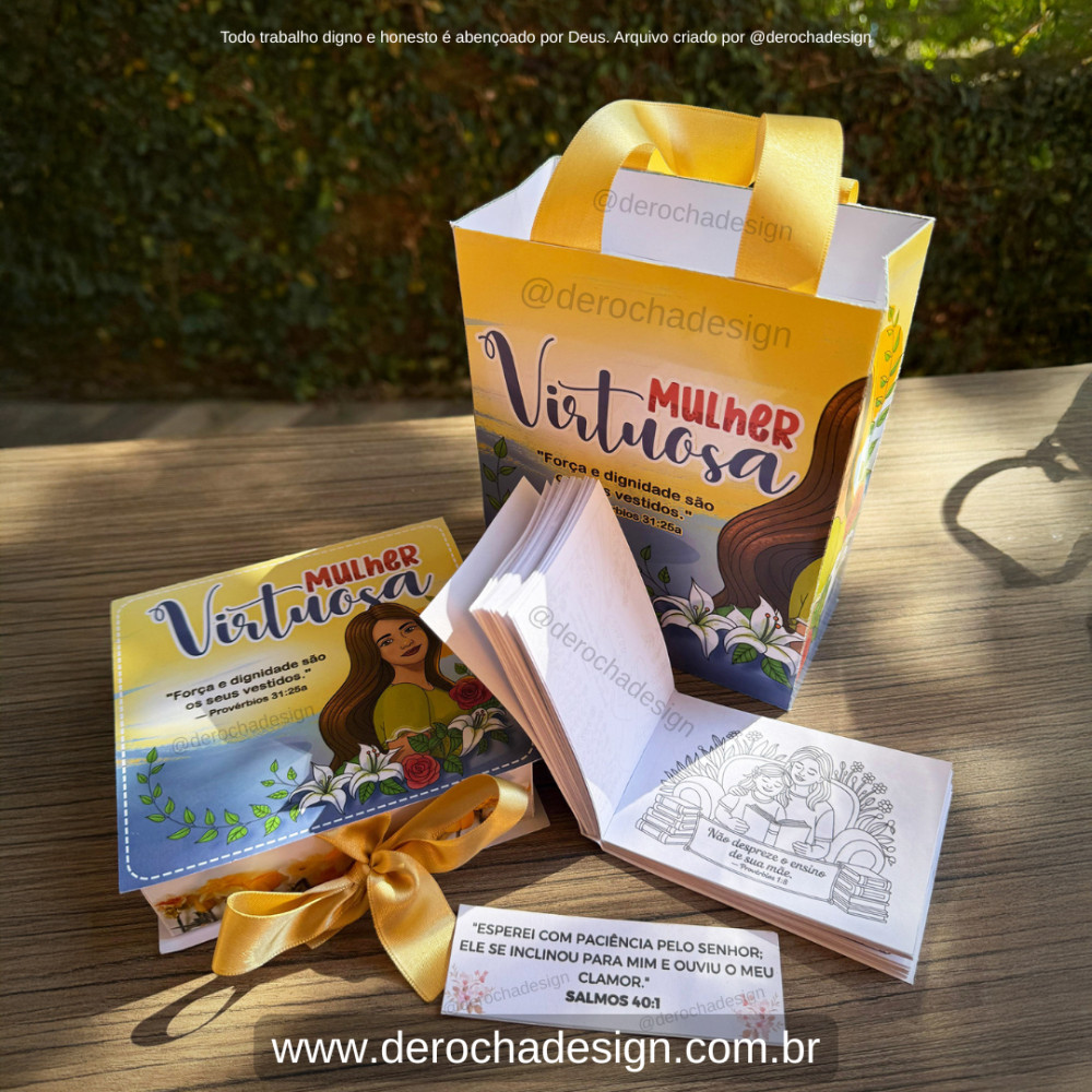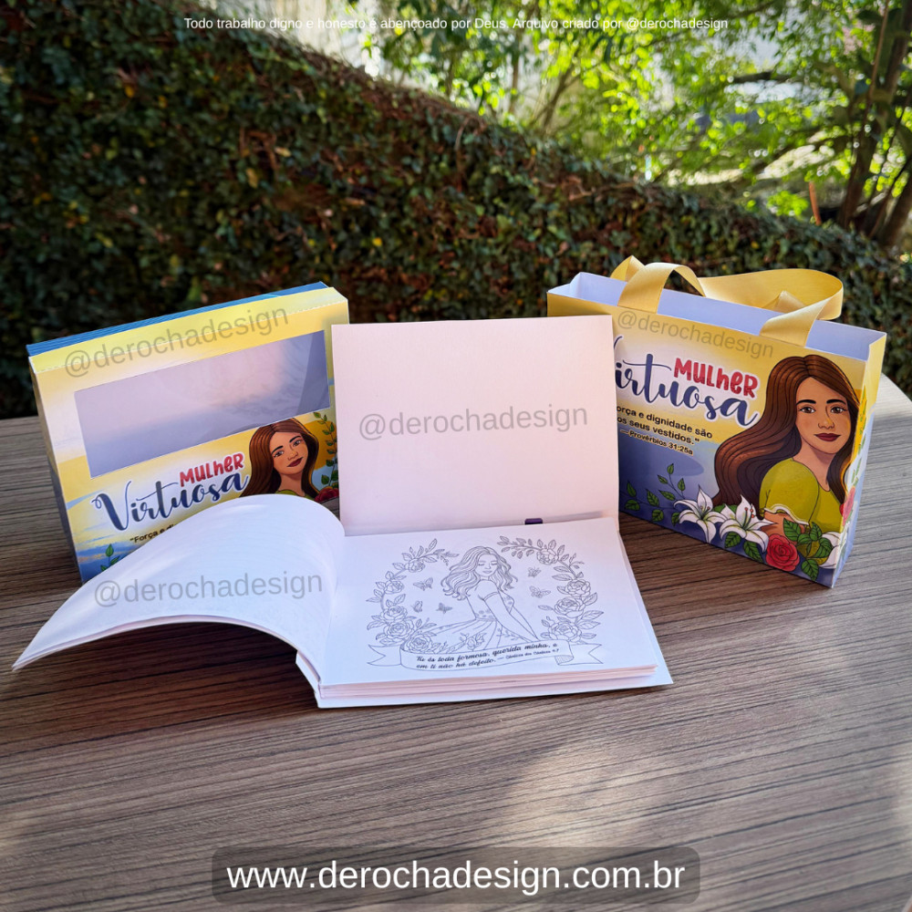 3 – Caixa De Rocha + bloquinho + versículos + sacola.