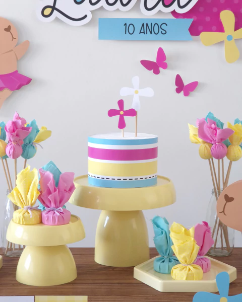 Itens Mesa: Capivara, flores, arco iris e estampas;