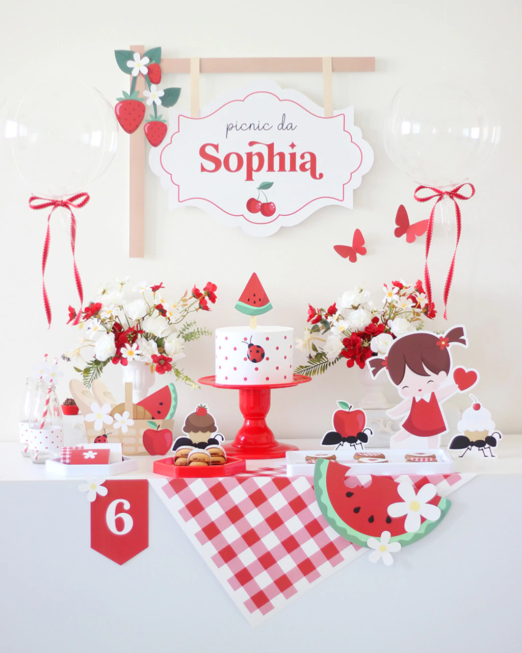 • Itens da mesa: Totens, melancia, margaridas e bandeirola