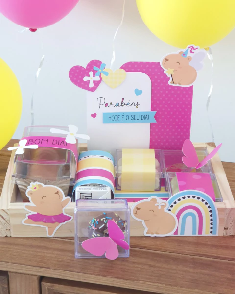 • Mini painéis, Estampas, Capivaras, Corações, Flores, Borboletas e Arco íris.