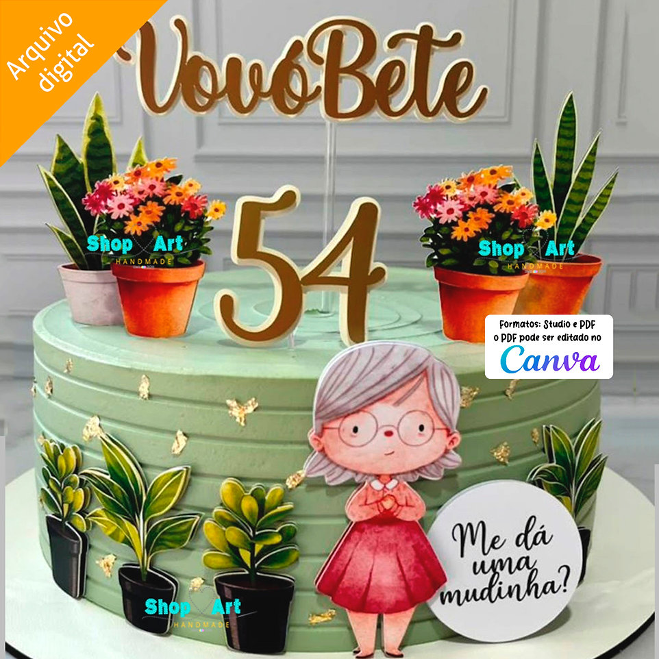 Arquivo de Corte Topo de Bolo Plantinhas da Vovó