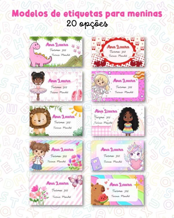 – 20 modelos de etiquetas escolares para meninas CANVA