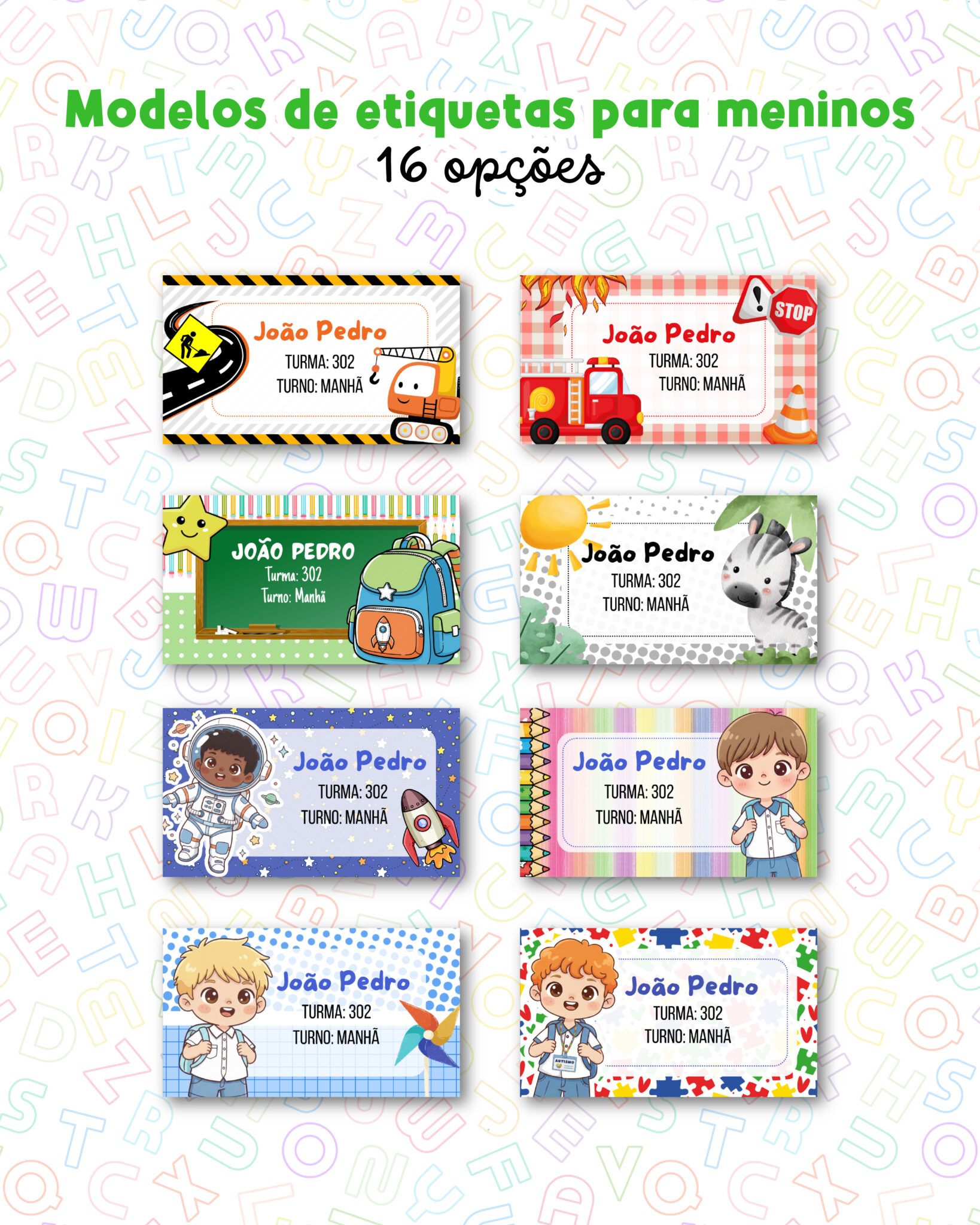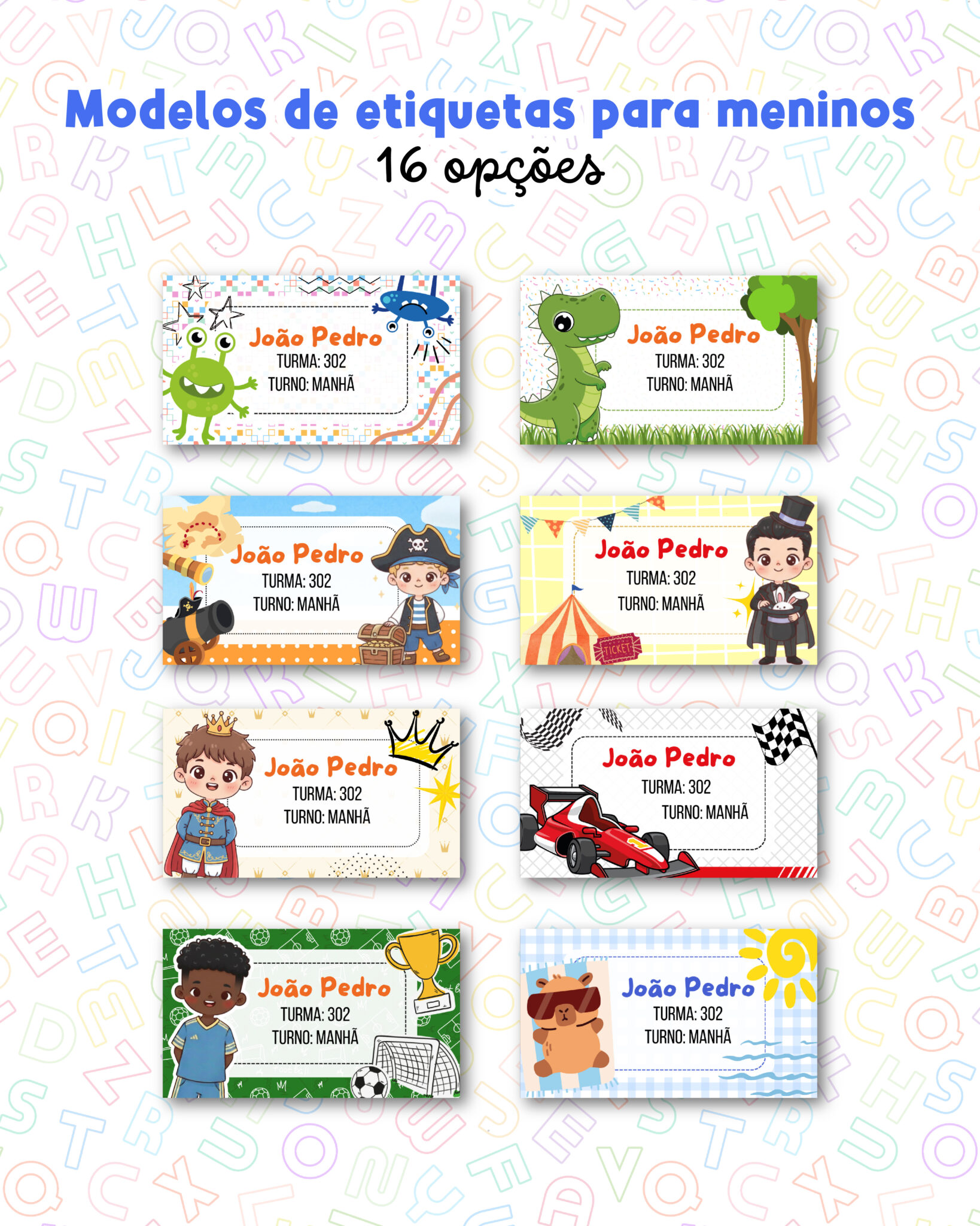 – 16 modelos de etiquetas escolares para meninos CANVA