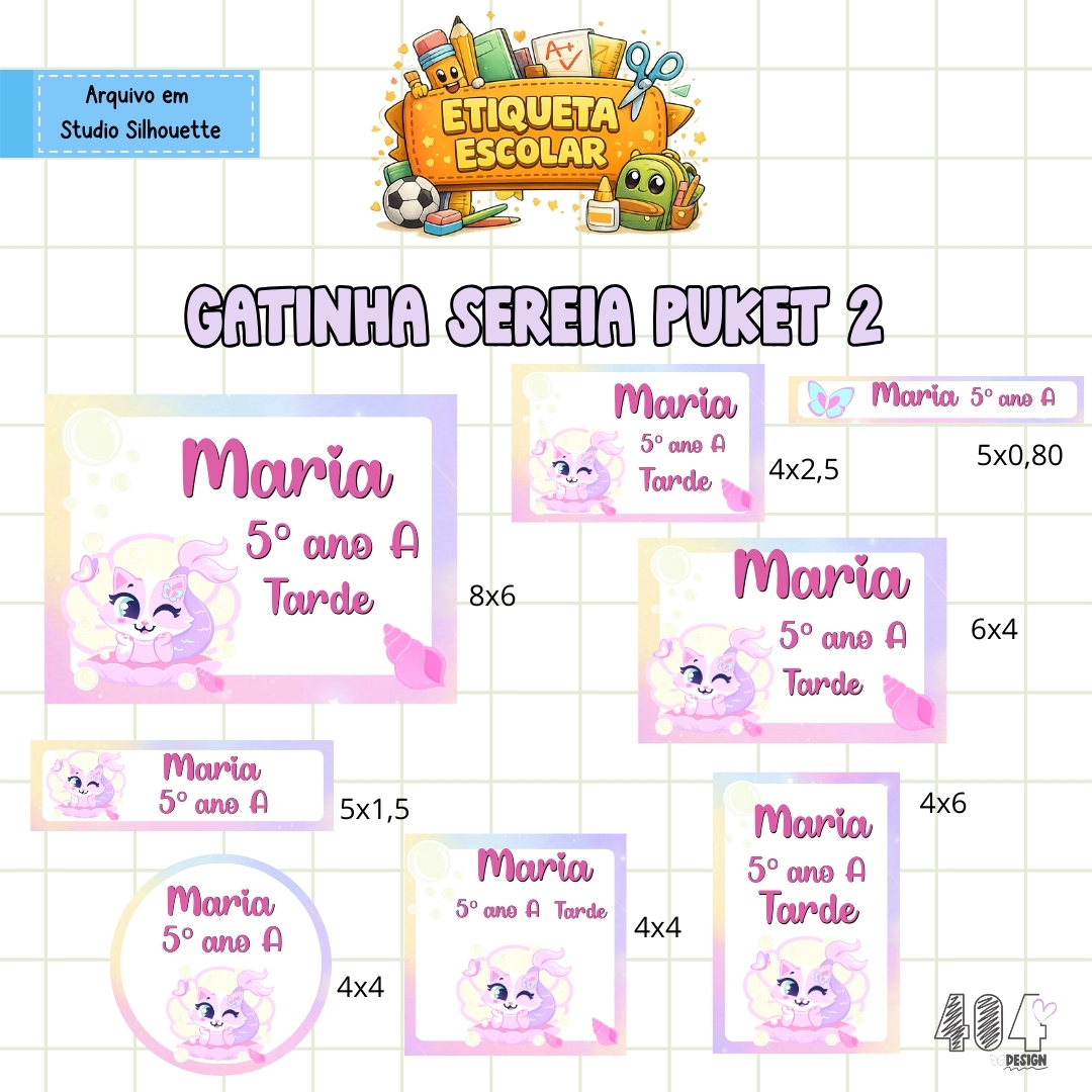 Kit Digital Etiqueta Gatinha Sereia Puket