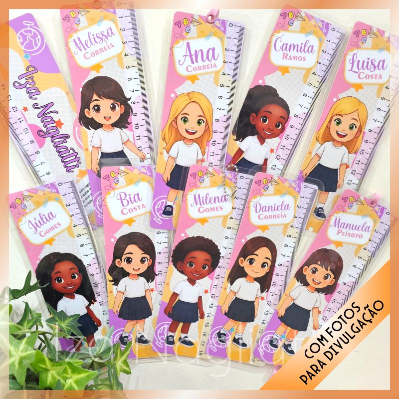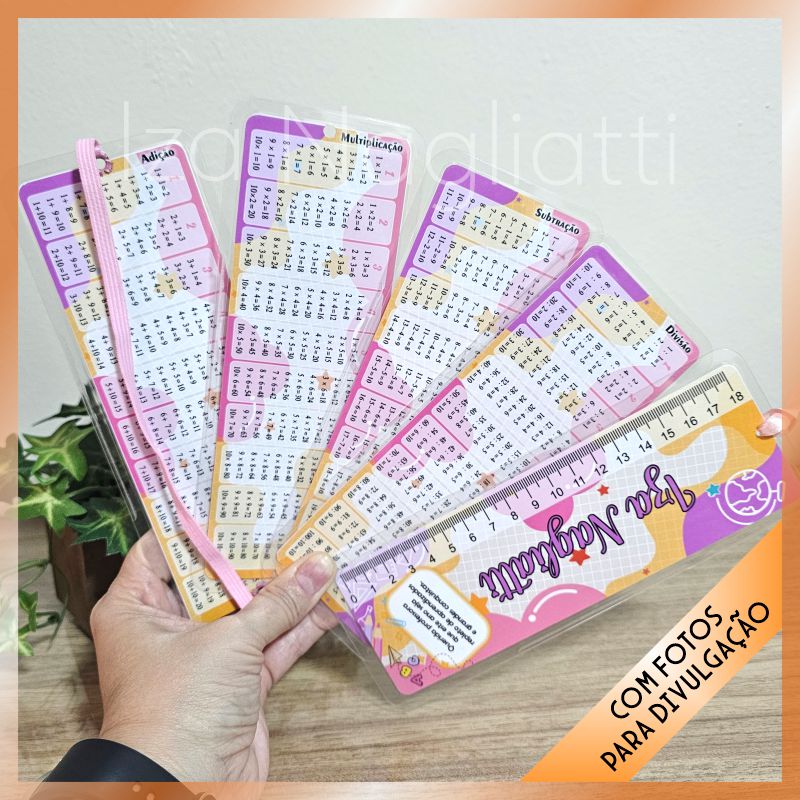 Tabuadas das 4 operações com régua e 9 mascotinhas meninas – Volta às aulas