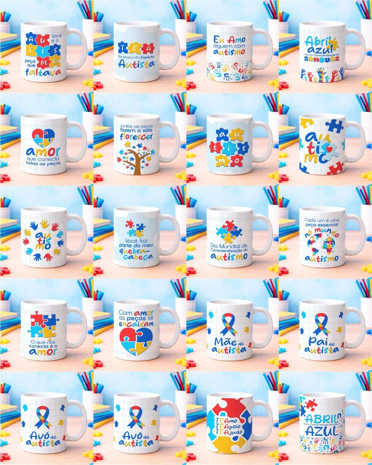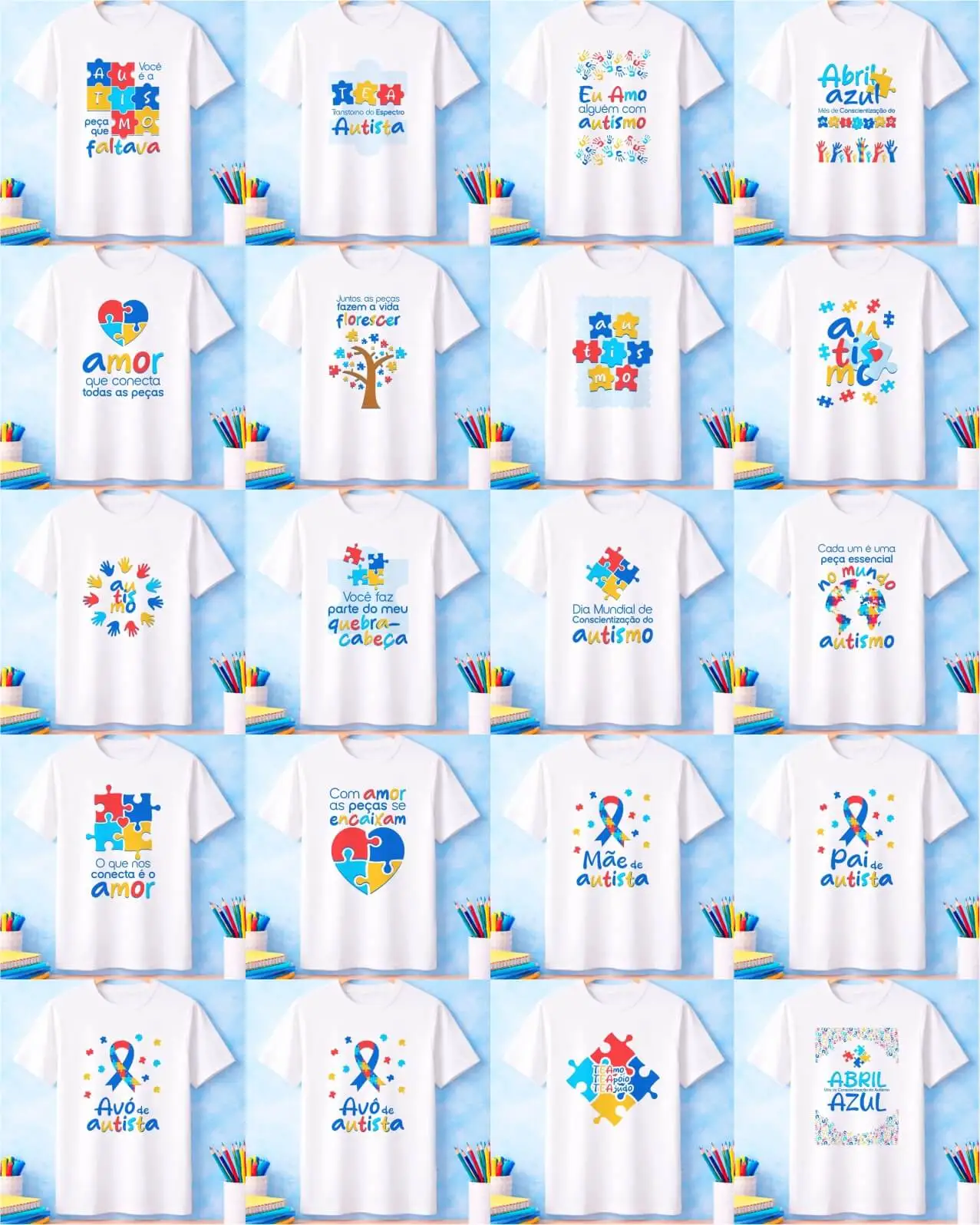 Pacote de Artes Canecas e Camisas Autismo