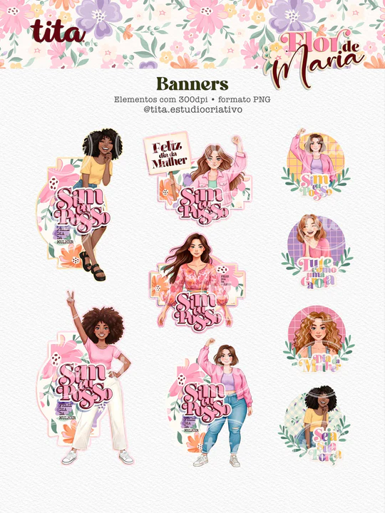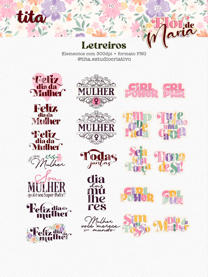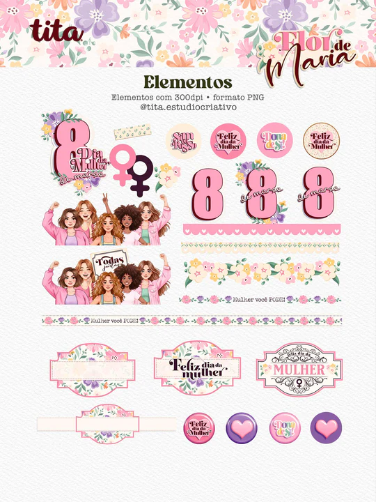 Flor de Maria - Pack Printables 01 - Dia das Mulheres O preço original era: R$29,90.O preço atual é: R$4,90.