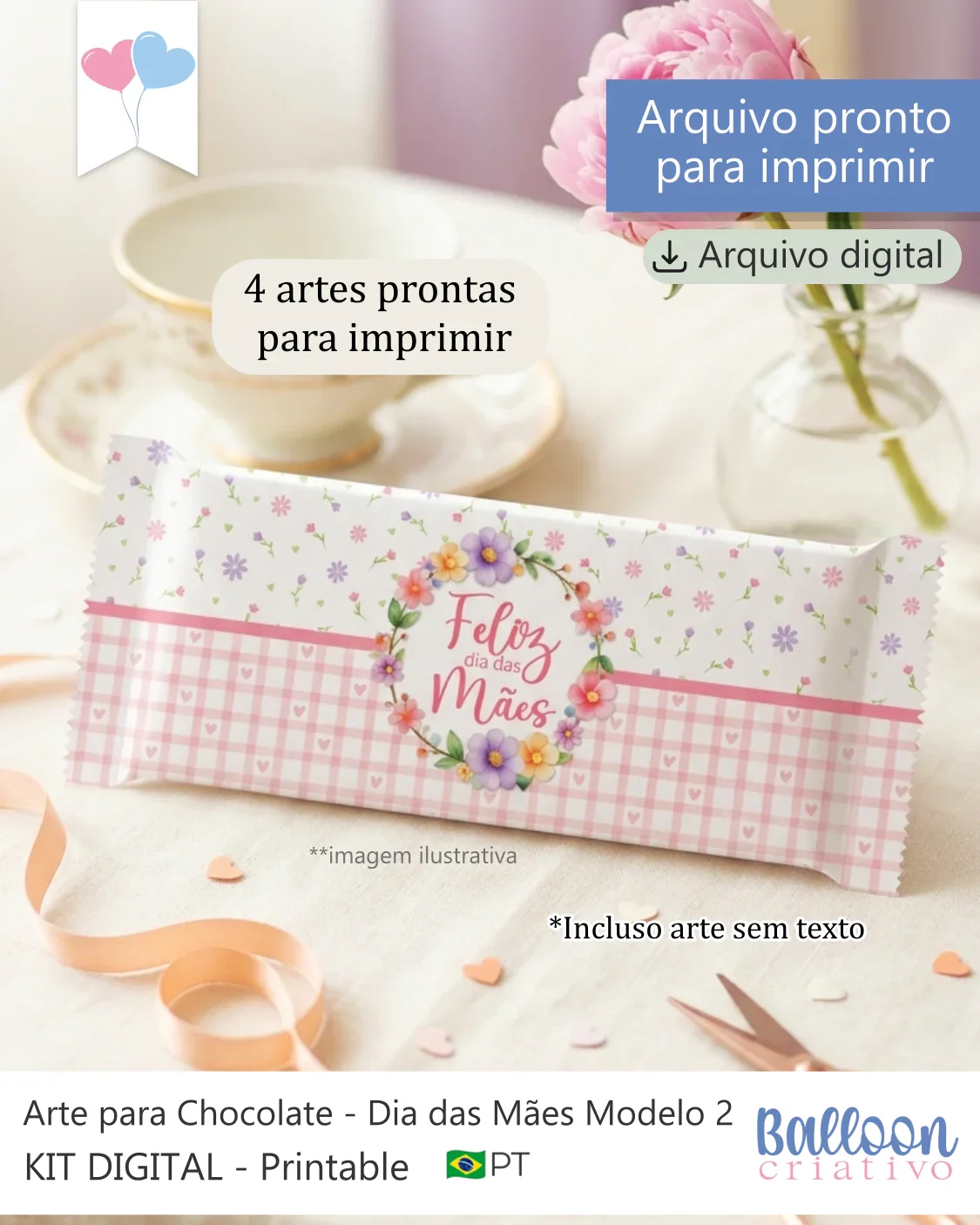– 4 artes embalagens para Chocolate de 80g a 100g (PNG/300 dpi) – Tamanho da arte 20cm x 22cm (artes com textos em Português e também artes sem textos)