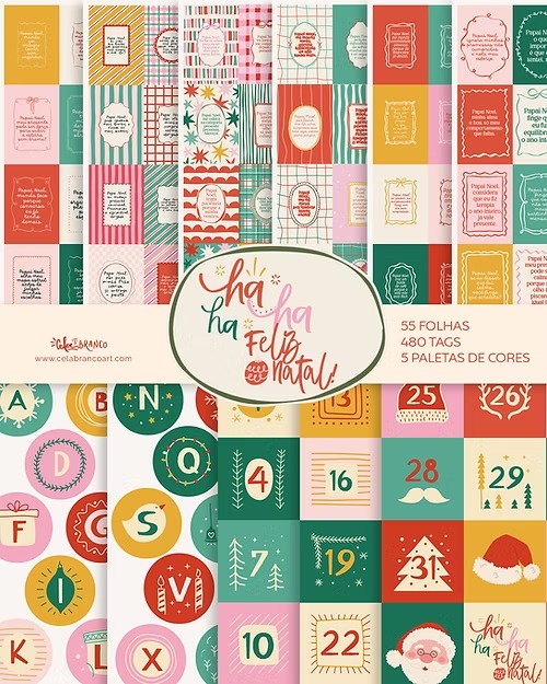 - A coleção Ha Ha Ha Feliz Natal vai transformar o seu fim de ano em pura diversão. São 55 papéis digitais em formato A4, organizados em 5 paletas de cores, com 11 folhas em cada uma. Você recebe mais de 480 tags prontinhas, além de tags de alfabeto e números para personalizar tudo com ainda mais charme.