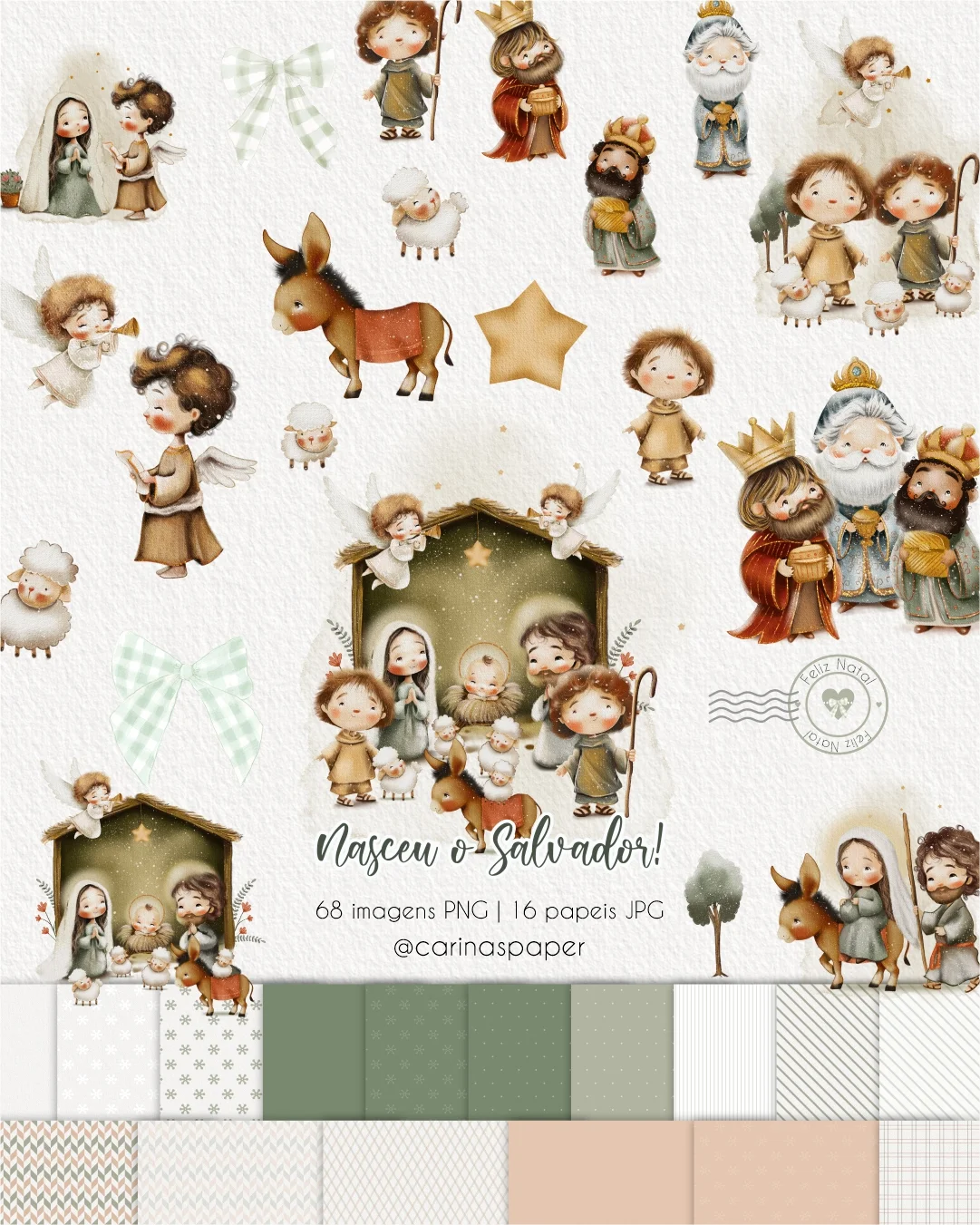 O kit digital Nasceu o Salvador foi criado para quem ama transformar fé e beleza em produtos que tocam o coração. É um material completo para papeleiras que desejam oferecer algo especial no Natal. Ele traz cenas marcantes do nascimento de Jesus em um estilo suave e acolhedor, perfeito para agendas, cadernos, livrinhos, marcadores e presentes personalizados.