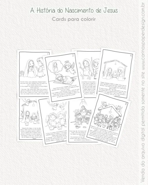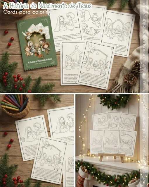 Kit Pronto para Imprimir: Cards A6 A História do Nascimento de Jesus