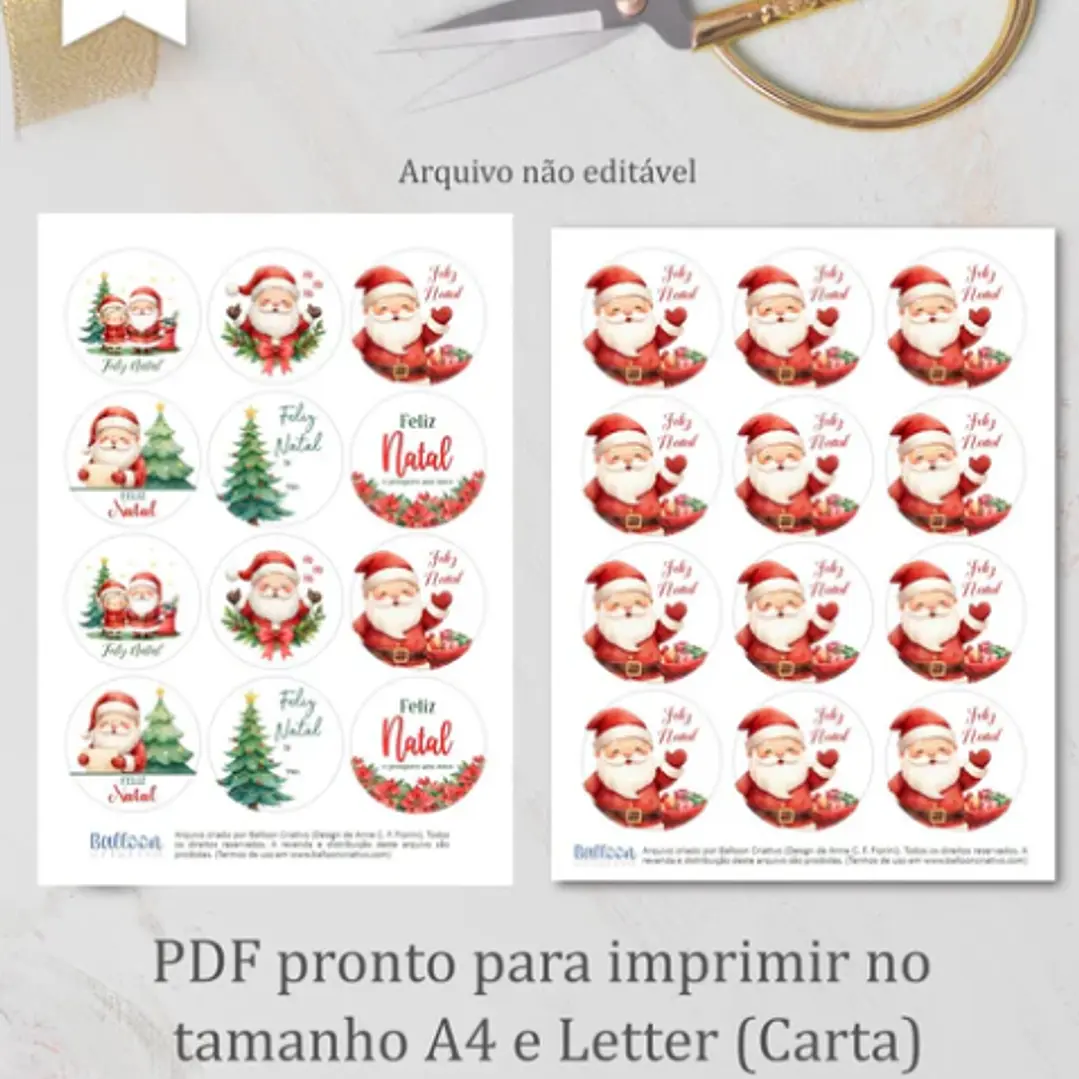 Kit Tag Redonda 6cm- Natal