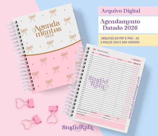 Agendamento Datado 2026 Rosa (arquivo digital)