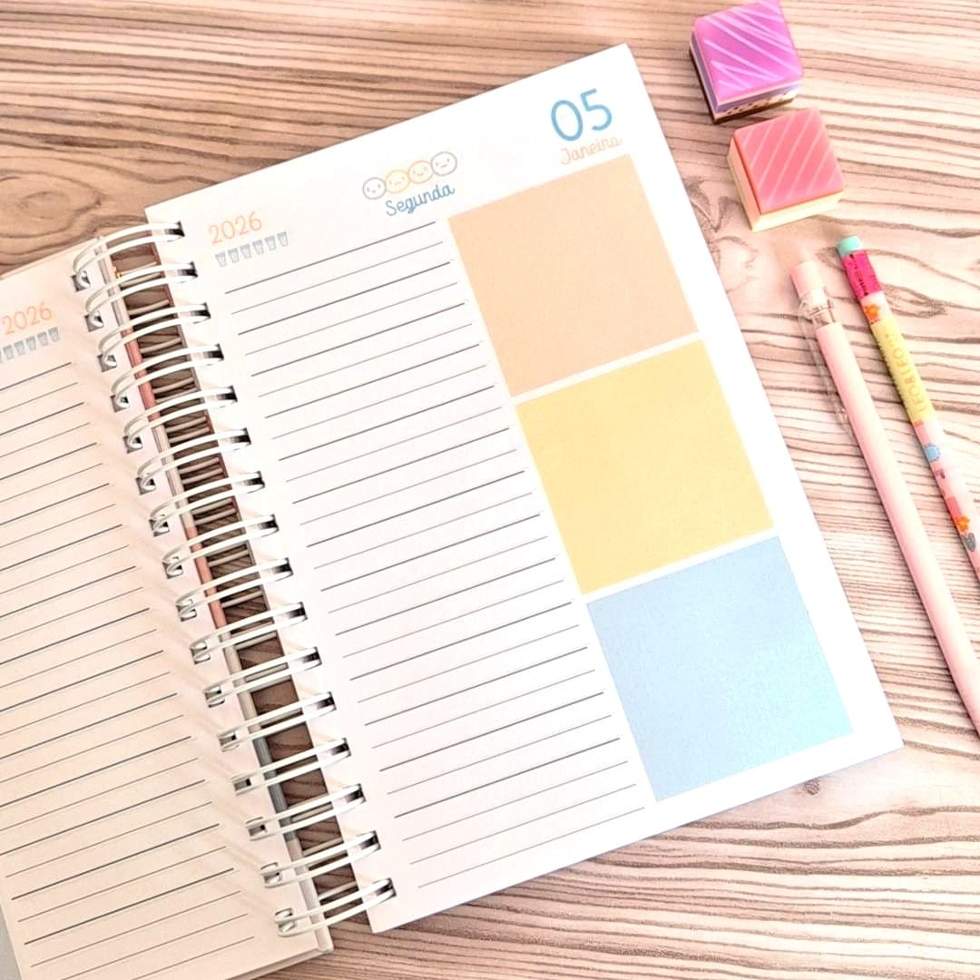 Agenda A5 – 2026 Miolos Datada e Permanente – 1 DIA POR PÁGINA – MIOLOS ( com sem horário) – Floral Cute