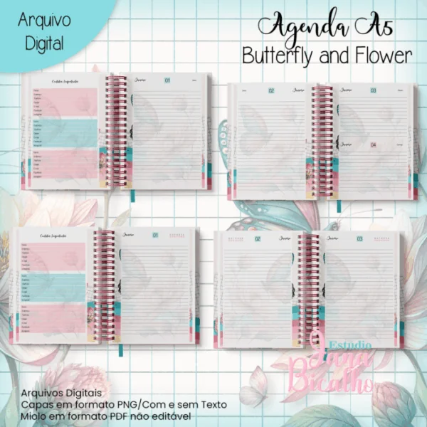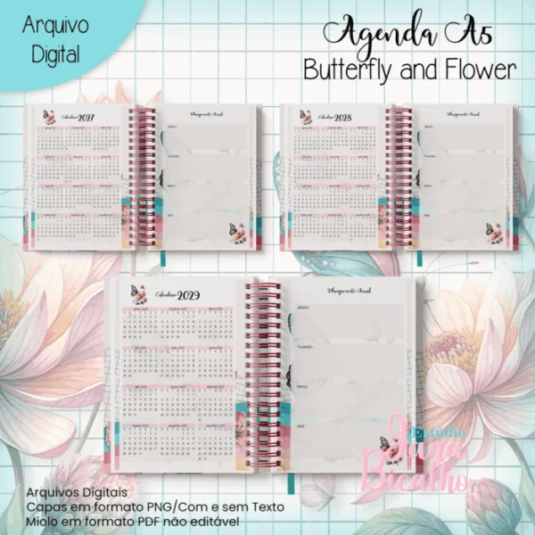 Agenda A5 Butterfl and Flower (Miolo Datado + Miolo Permanente)