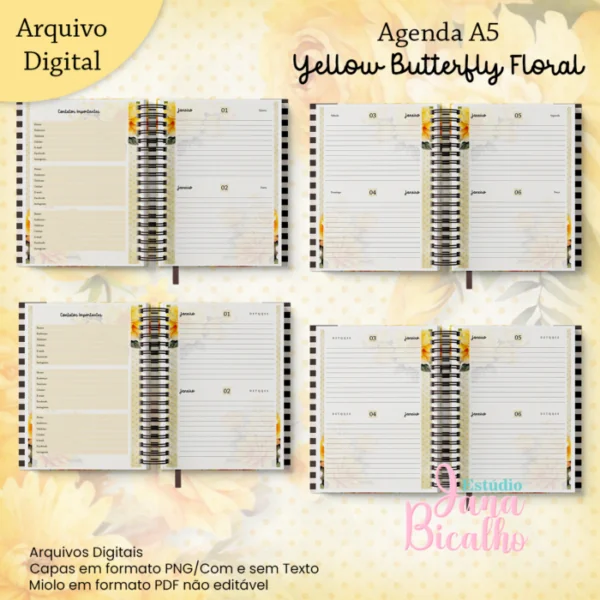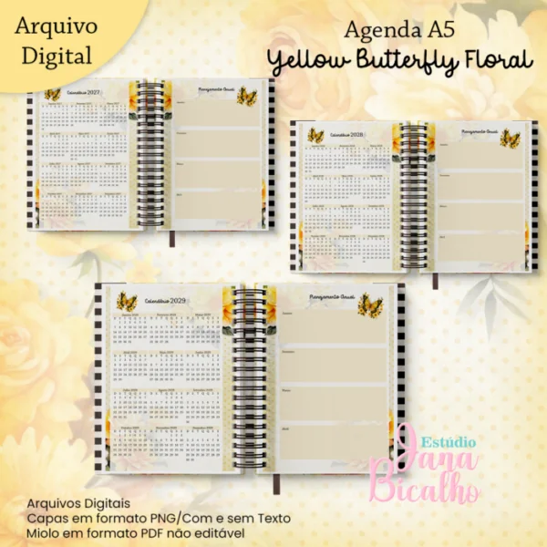 Agenda A5 Coleção Yellow Butterfly Floral (Miolo Datado + Miolo Permanente) 2DPP