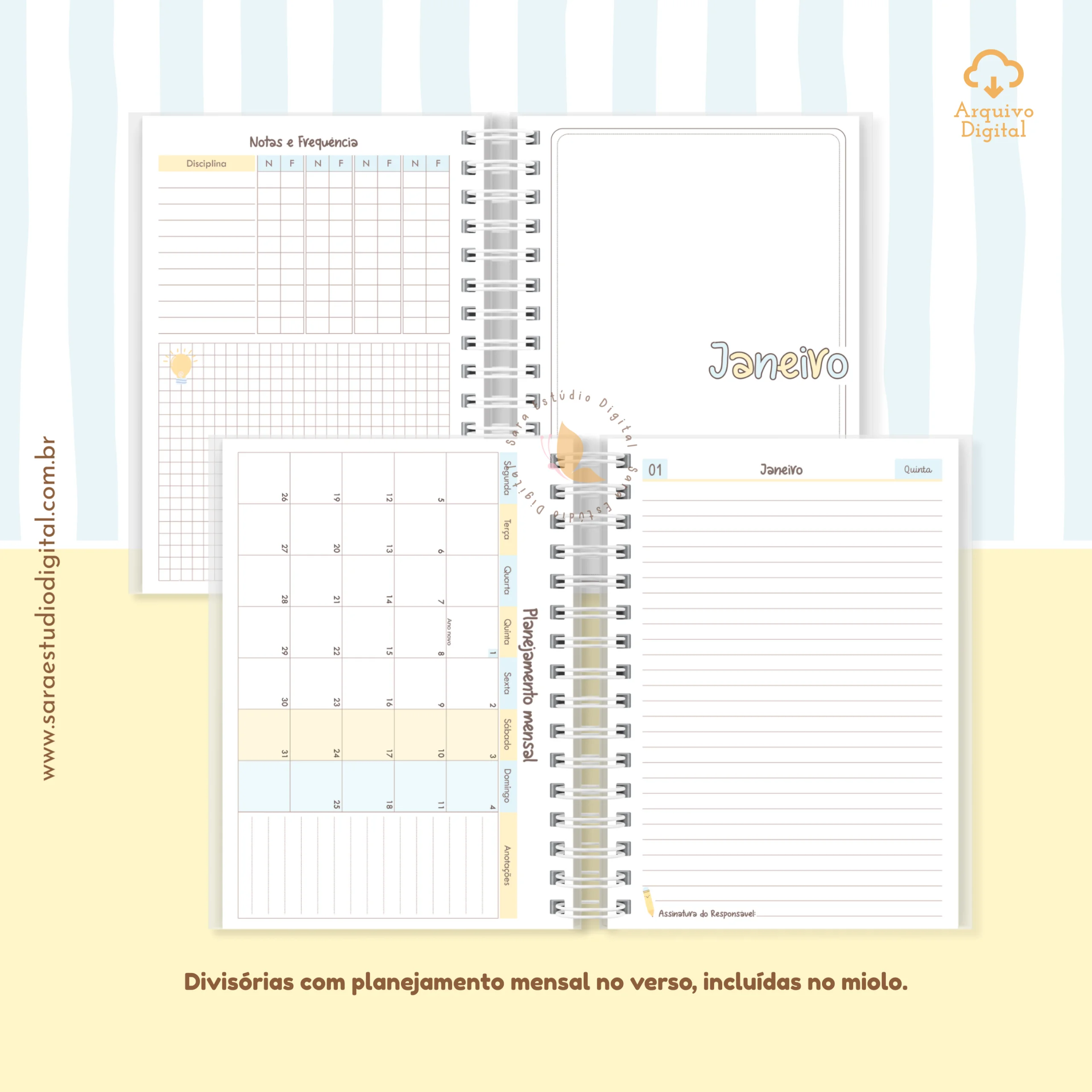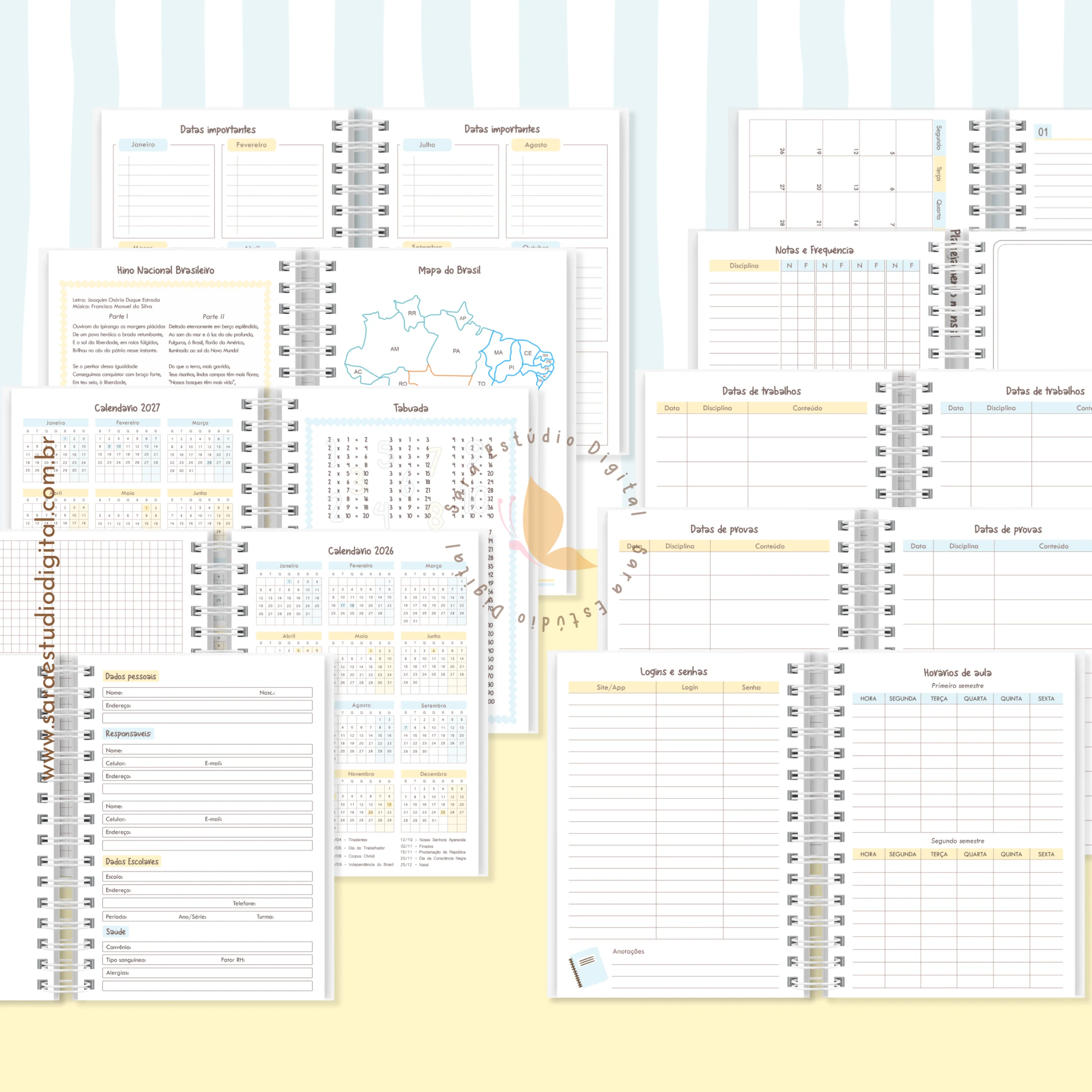 Agenda Escolar 2026 – Azul com amarelo (A5) – 1 e 2DPP