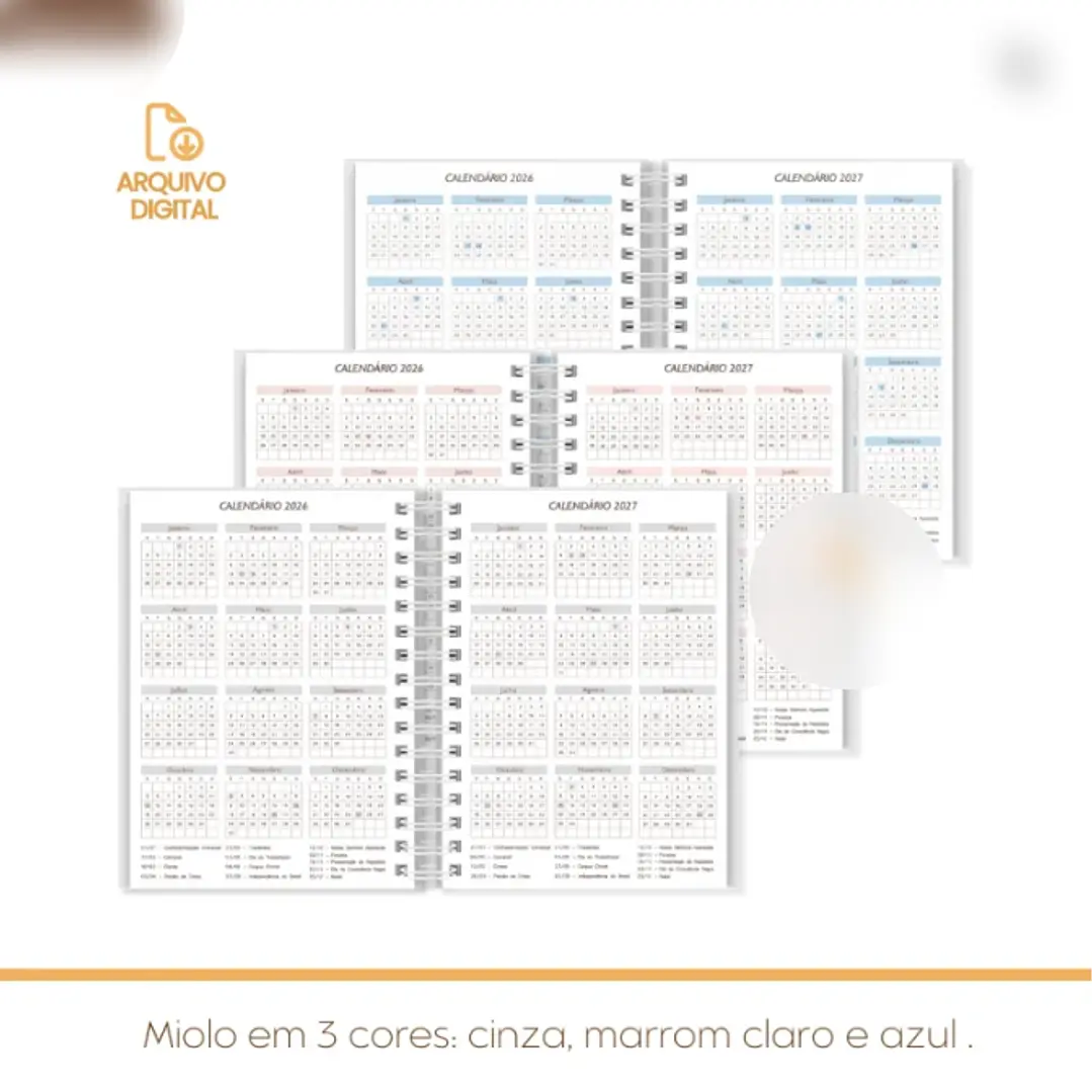 Arquivo Agenda Neutra Não Datada 1 e 2 Dias por Página – 3 Cores