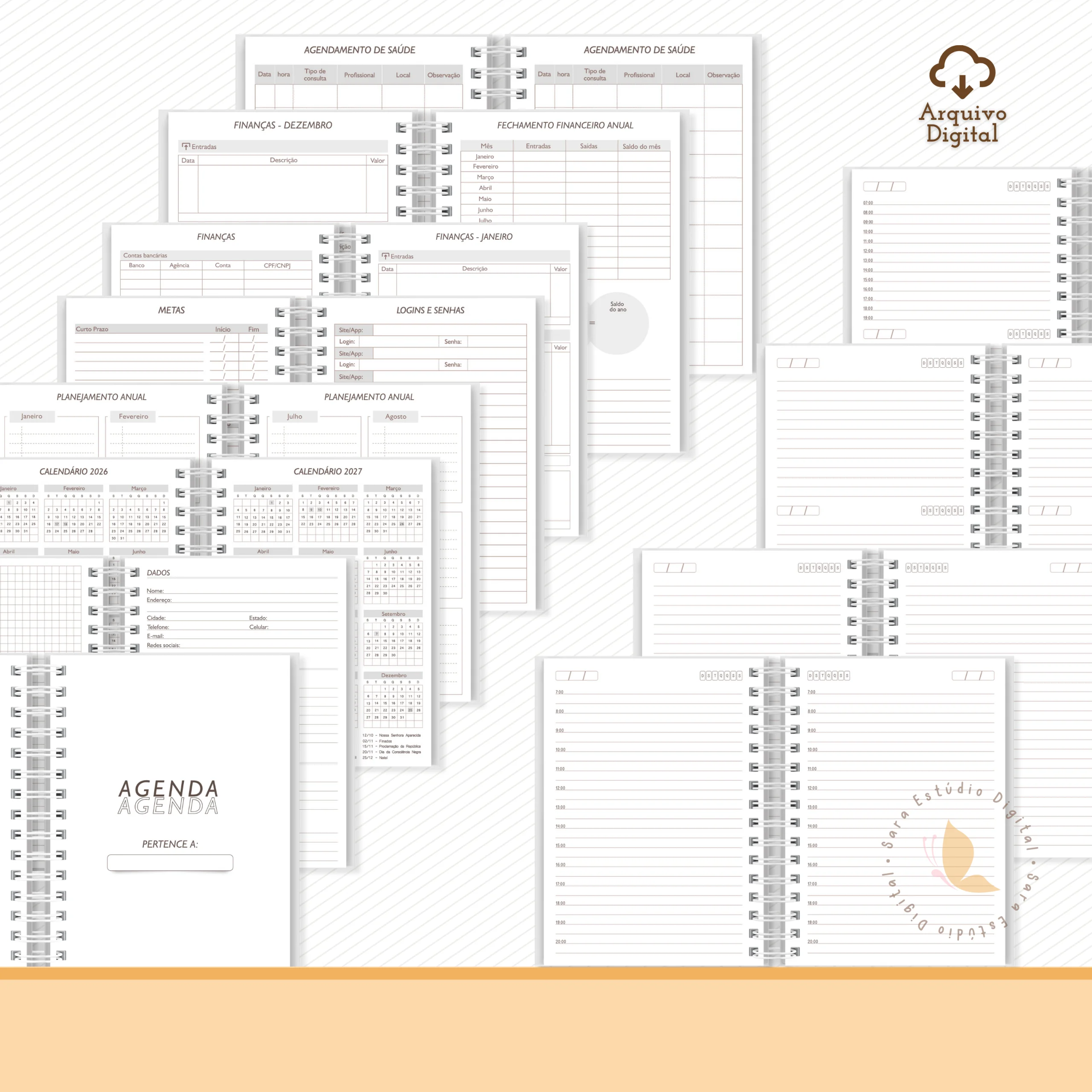 Arquivo digital (PDF): Agendas neutras A5 não datadas (14,8×21)