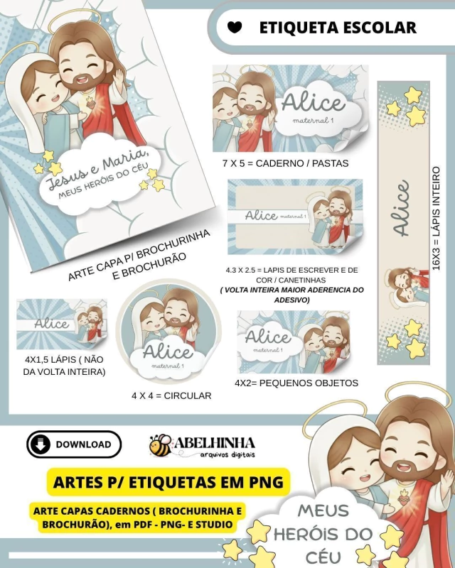 •  ARQUIVO DIGITAL – ETIQUETAS ESCOLARES CATÓLICAS ✨