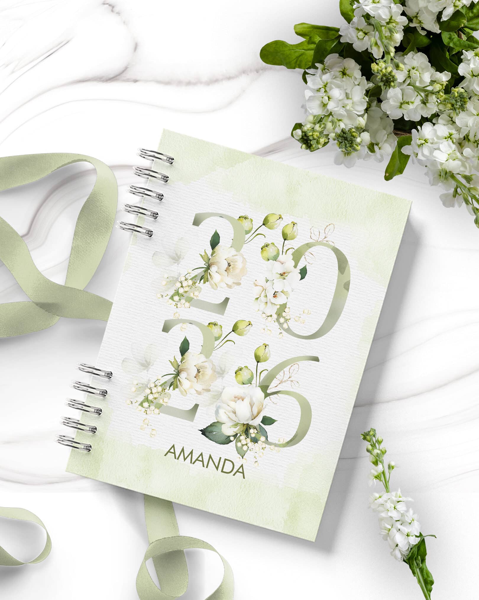 Combo 6 Agendas 2026 e Permanente Floral Rosas Brancas- Arquivo Digital