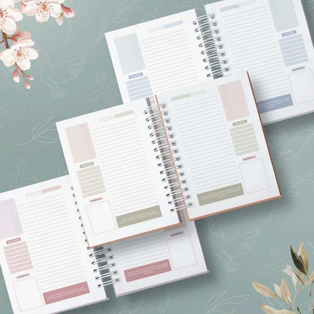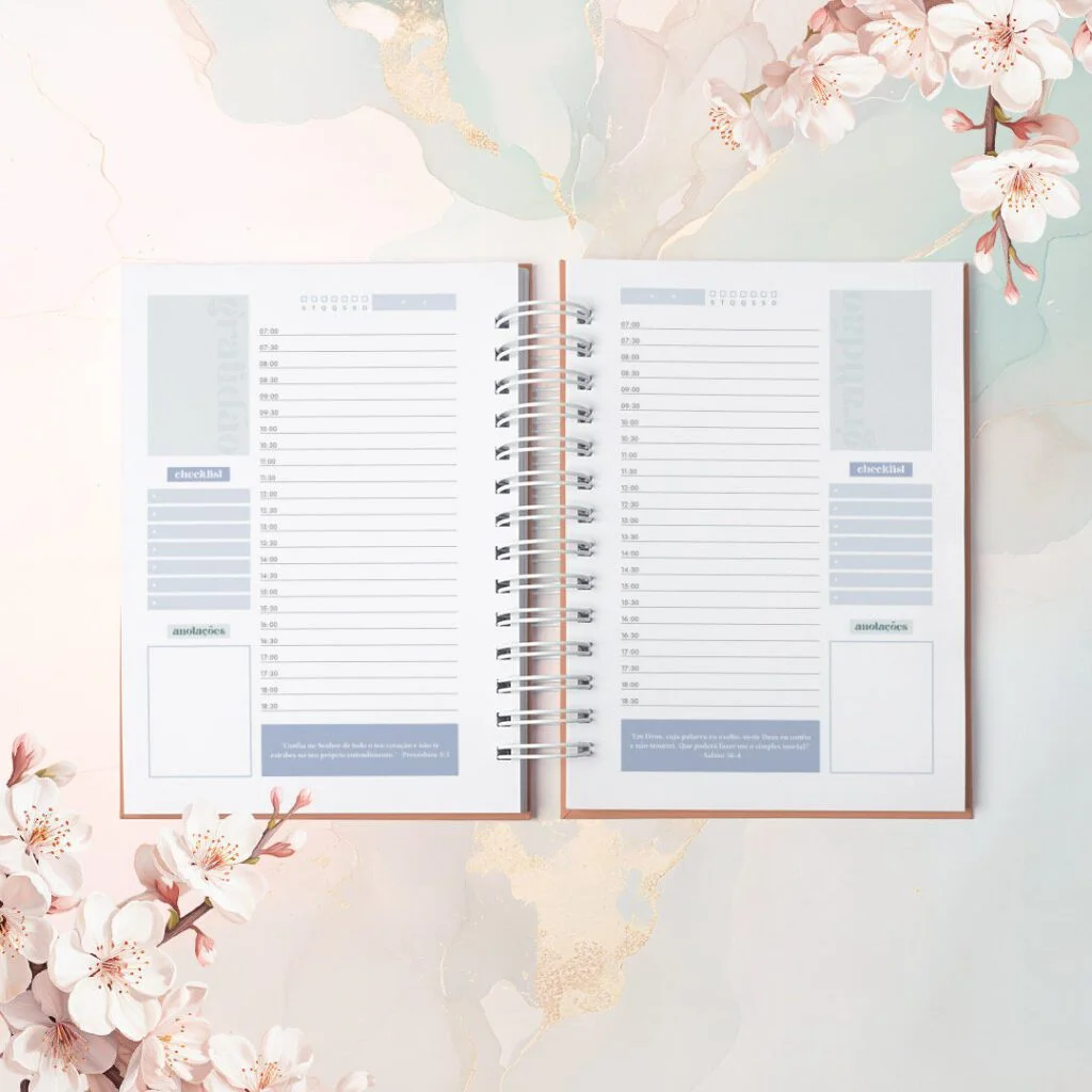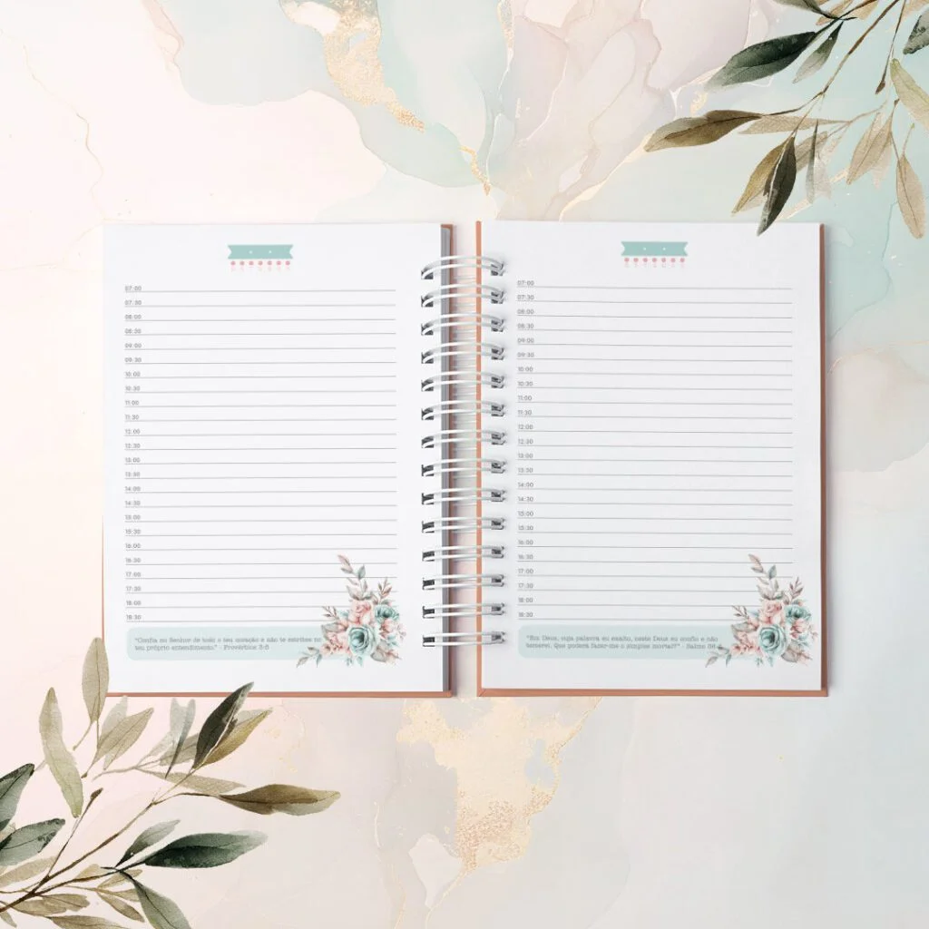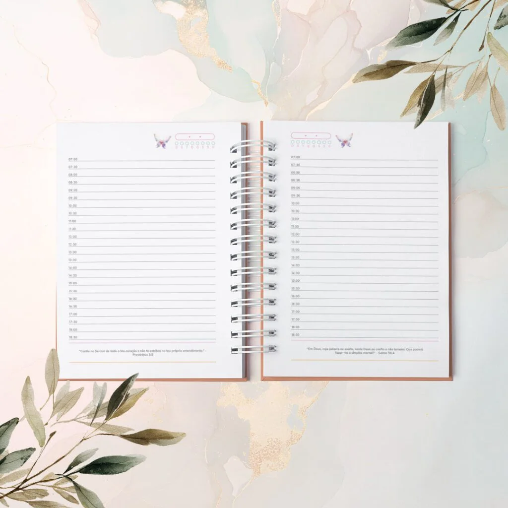 Combo Agendas com Versículos Permanentes e Datadas foi criado para quem vê a organização como algo além de prazos e listas. Com um versículo bíblico diferente em cada página, elas irão acompanhar o dia com leveza, como presença diária de inspiração e fé no meio da rotina.