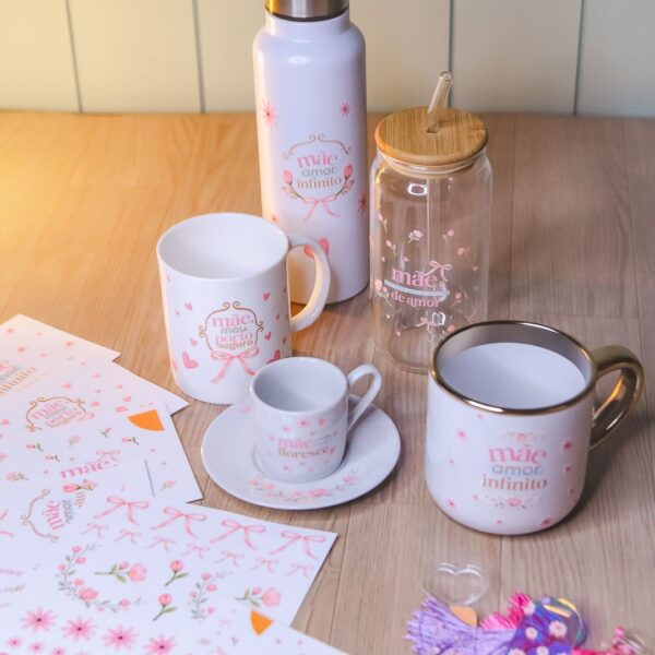 Para quem trabalha com DTF e quer aproveitar a data com produtos de alto valor agregado. Canecas, cartelas e marca-páginas acrílicos com a identidade visual da coleção.