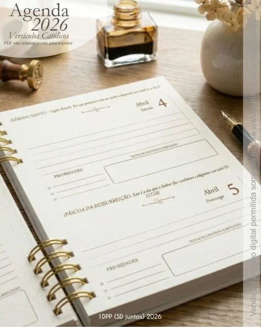 • A Agenda que o público católico esperava: Mais do que uma agenda cristã genérica, este é um projeto de fé. O diferencial está na curadoria: versículos selecionados para acompanhar cada Tempo da Igreja e a indicação dos Santos do dia e devoções populares, sem poluição visual. Um produto feito para organizar a vida e alimentar a alma, com a leveza que o dia a dia exige.