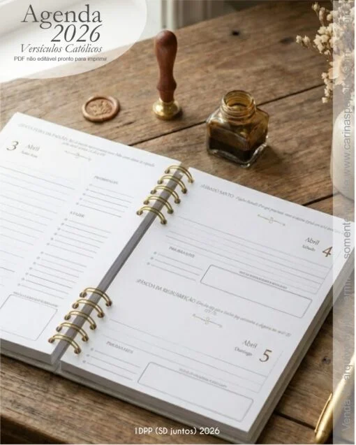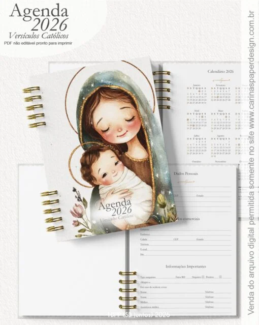 1 miolo de Agenda datada 2026 com versículos católicos PDF não editável com 336 páginas (168 folhas)