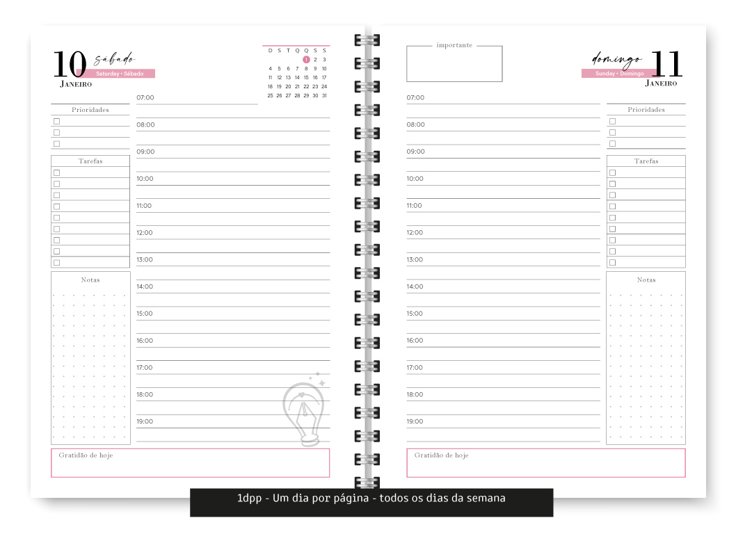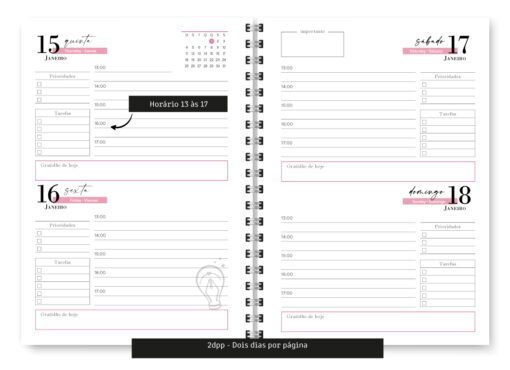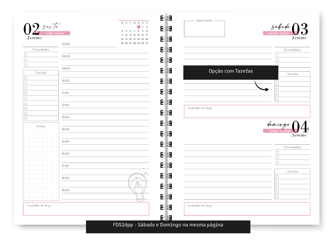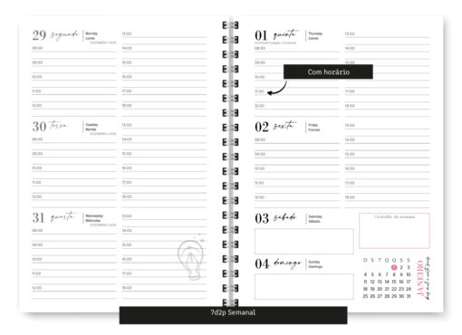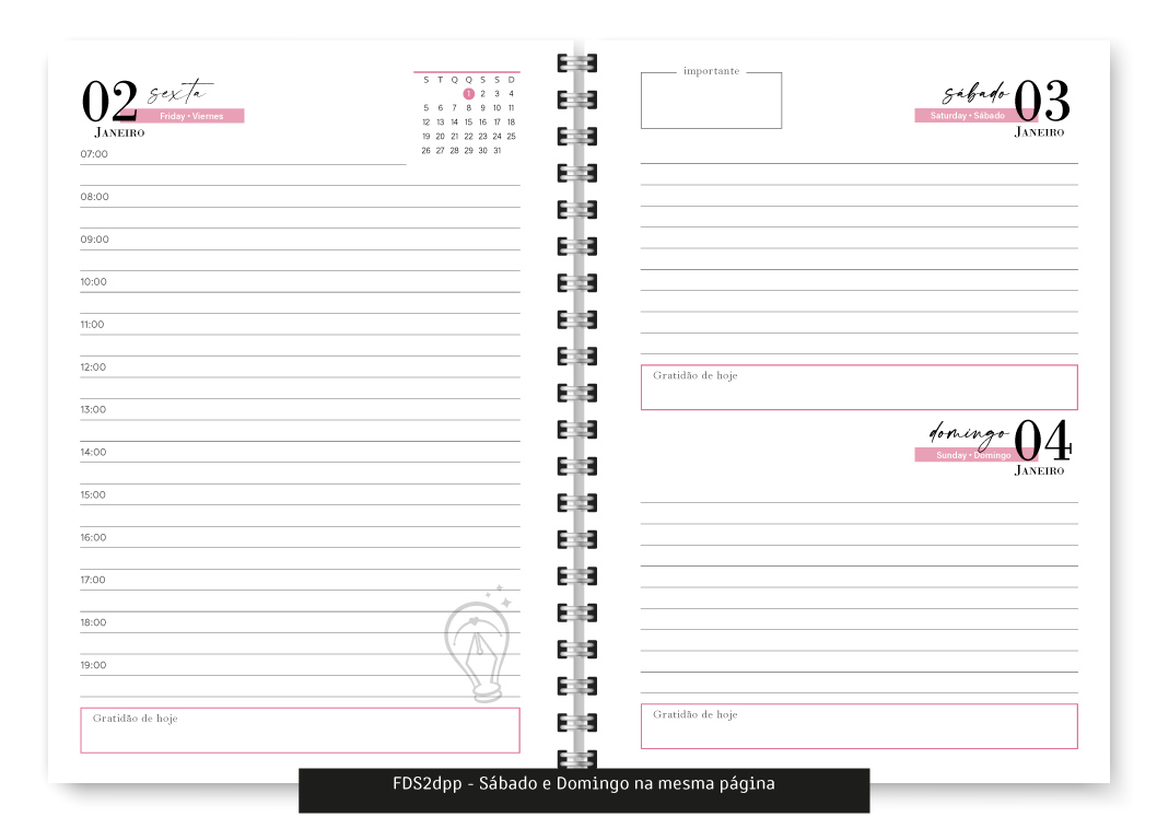 - Fim de Semana 2dpp, ou seja, Sábado e Domingo na mesma página – 354 páginas – Fim de semana não possui horário