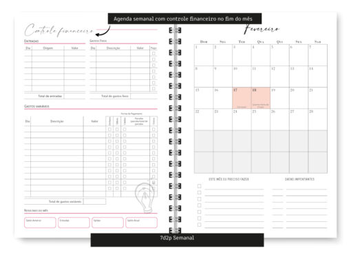 - Controle Financeiro Mensal (No layout 7dpp o Controle Financeiro é no final do mês corrente)