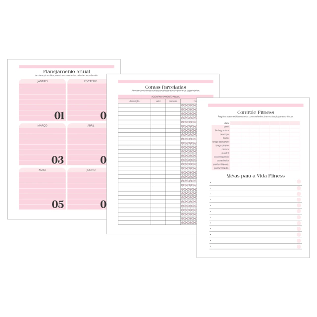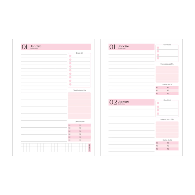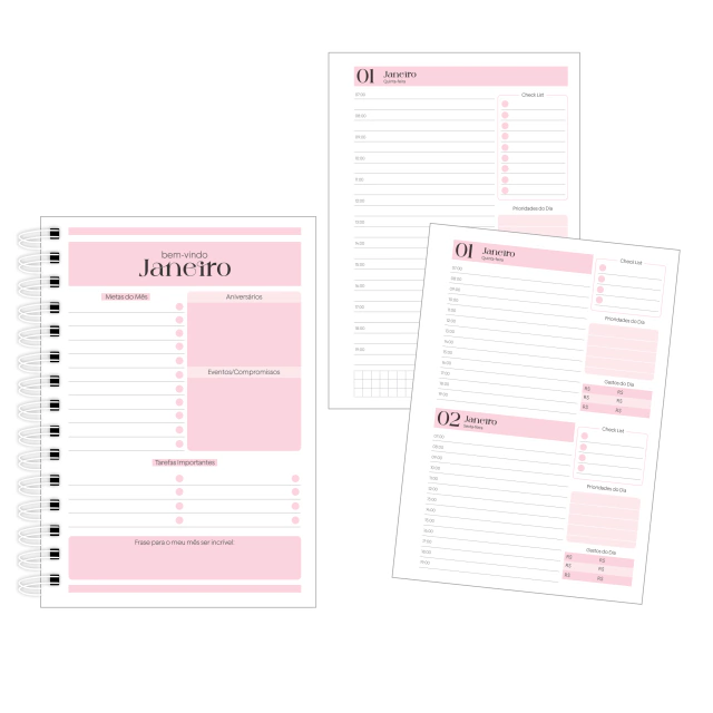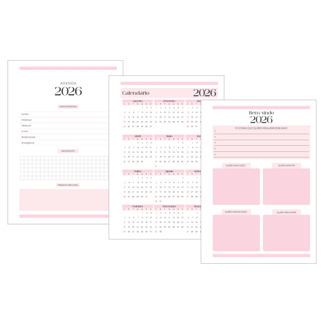 Agenda nas cores: Amarela, azul, cinza, lilas e rosa