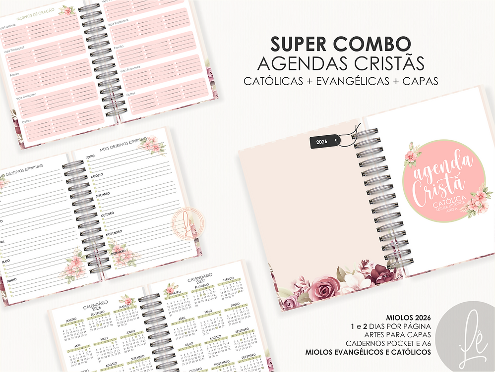 COMBO DE AGENDAS CRISTÃS (DATADAS) + ARTES DE CAPAS