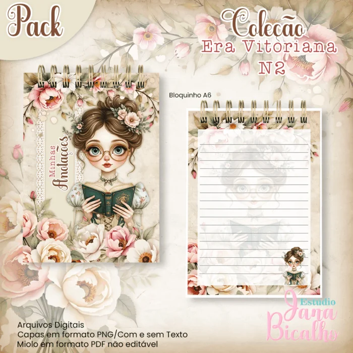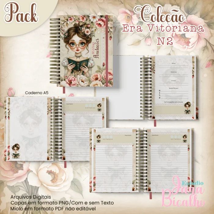 Caderno Pautado A5+Bloquinho A6 Coleção Era Vitoriana N2
