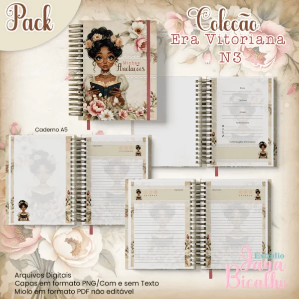 Caderno Pautado A5+Bloquinho A6 Coleção Era Vitoriana N3