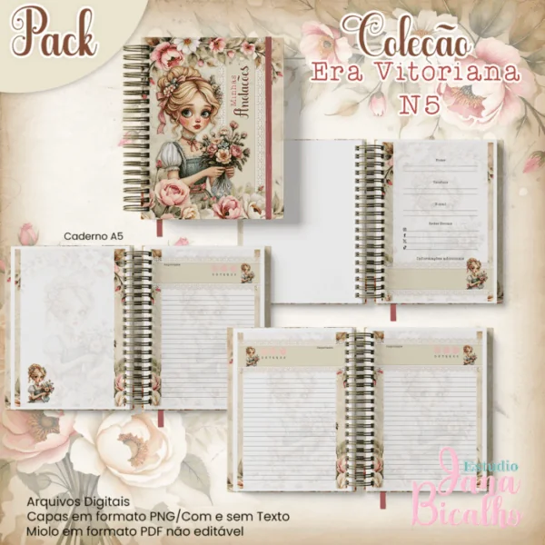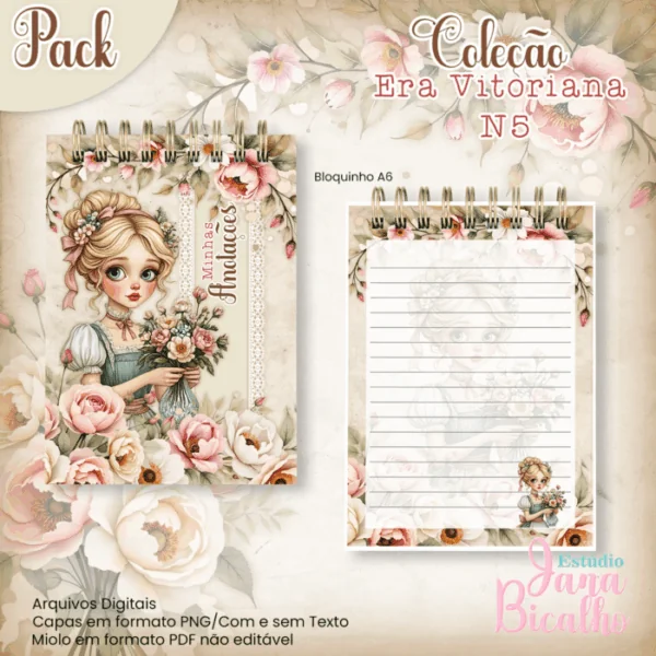 Caderno Pautado A5+Bloquinho A6 Coleção Era Vitoriana N5
