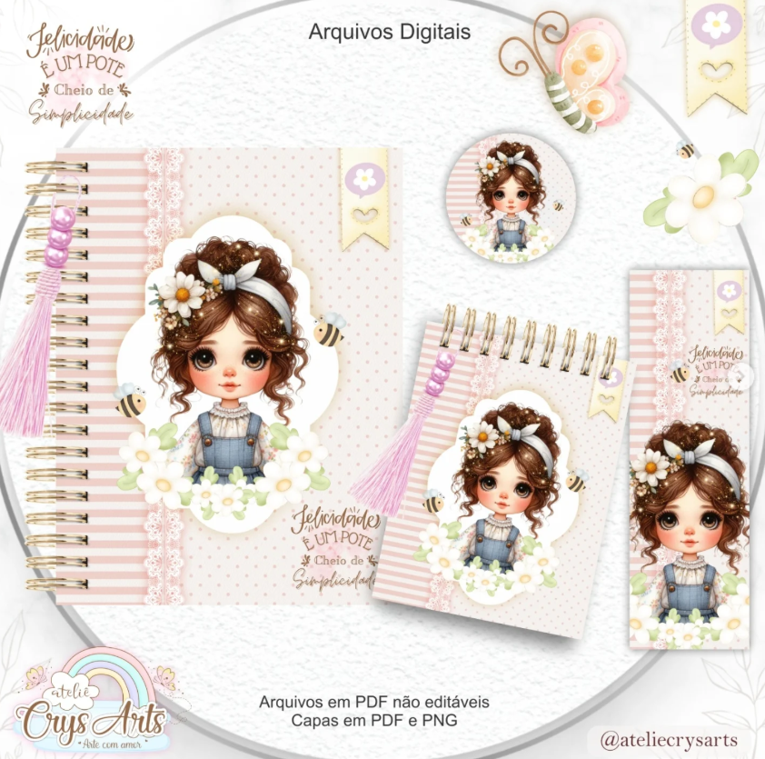 Arte caderno, marca página, bloquinho, tag e brochurinha