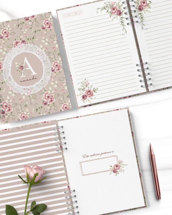 Arquivo 26 Capas Alfabeto A a Z e Miolo Pautado Coleção Rosas do Jardim
