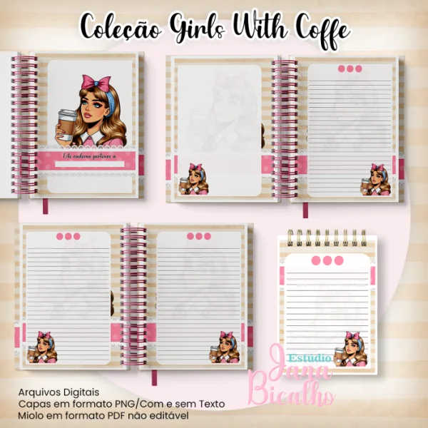 Caderno Pautado A5+Bloquinho A6 – Coleção Girls With Coffe N4