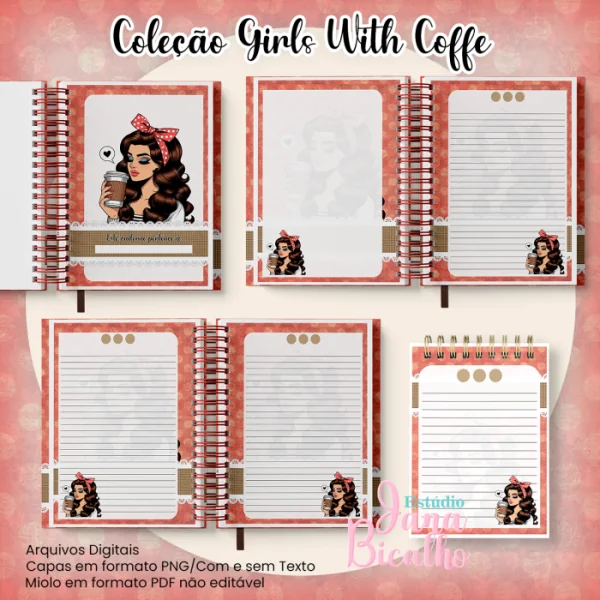 Caderno Pautado A5+Bloquinho A6 – Coleção Girls With Coffe N8