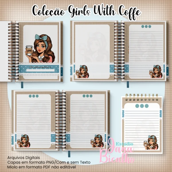 Caderno Pautado A5+Bloquinho A6 – Coleção Girls With Coffe N9
