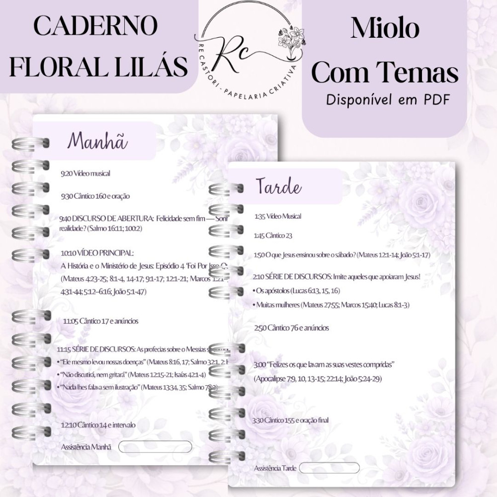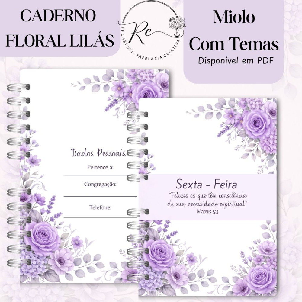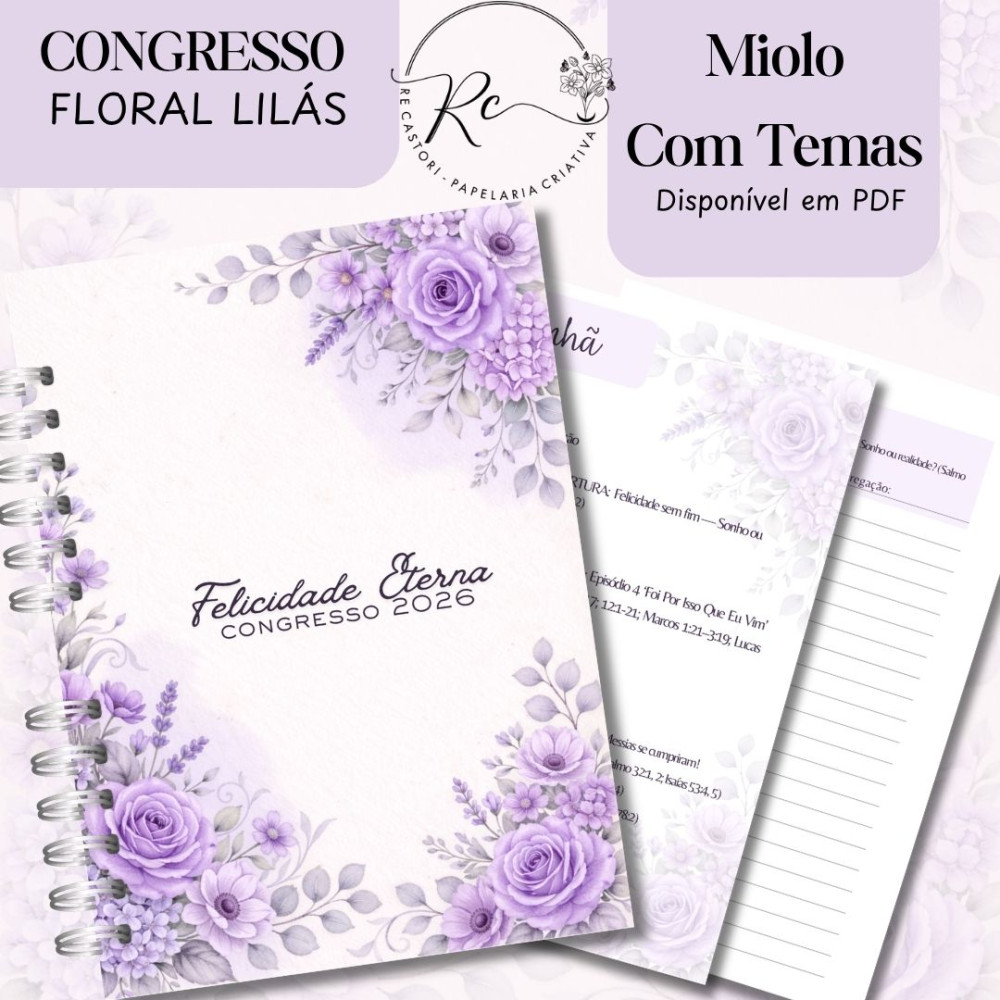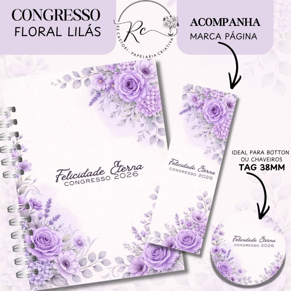 KIT DIGITAL CADERNO PARA O CONGRESSO 2026 – FLORAL LILÁS COM TEMA