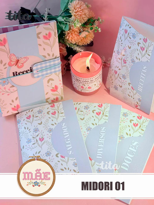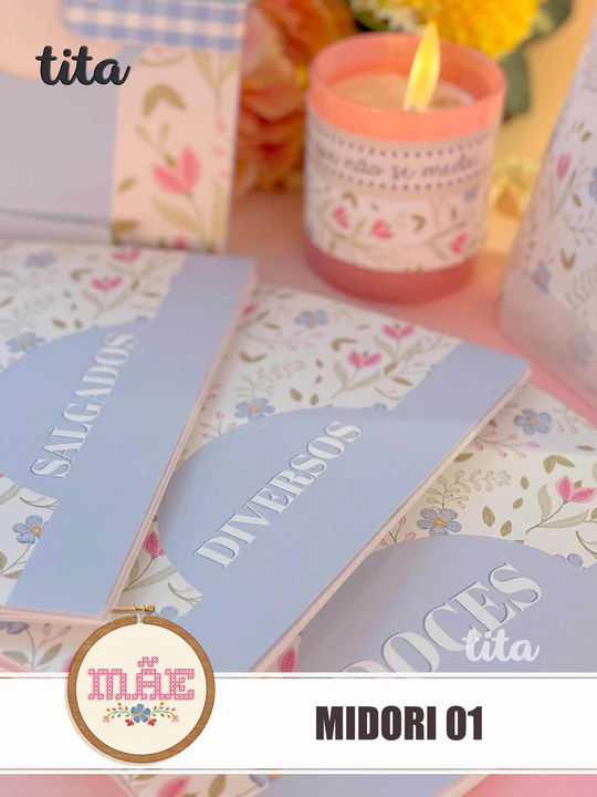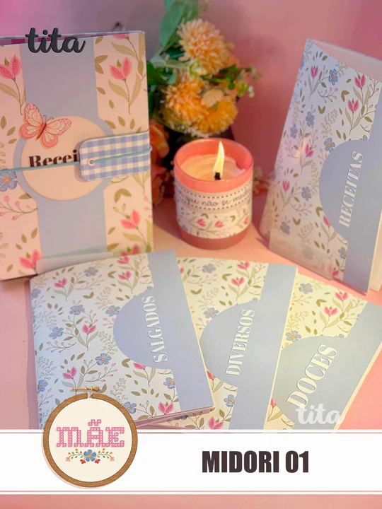 - Pack Midoris 01 – Capas Externas + Livretos + Miolo de Receitas + Miolo pauta, pontilhado e xadrez ( personalizado e básico).