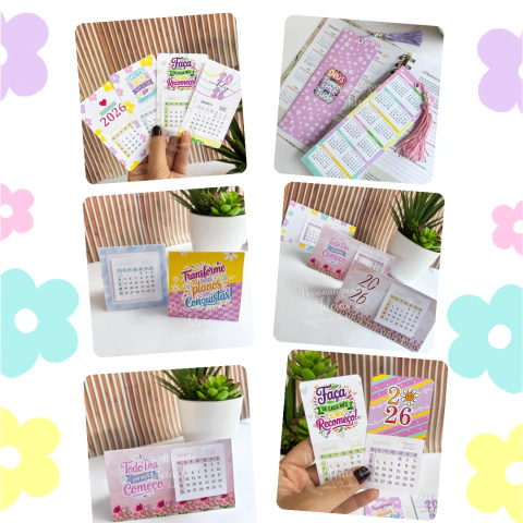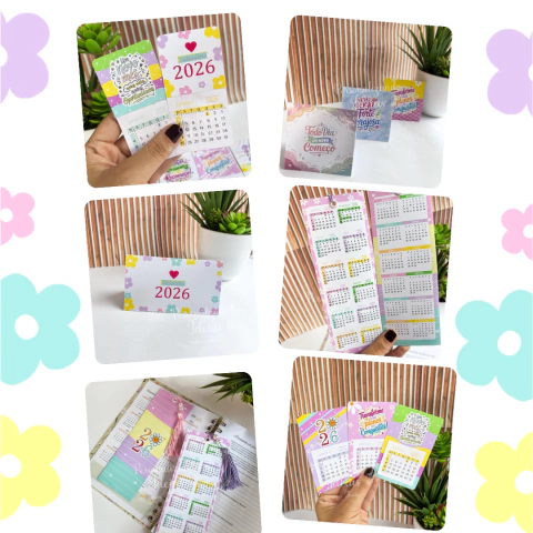 Arquivo digital calendários 2026 (com papéis, elementos, frases)